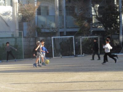 今朝は、サッカーや鬼遊びを楽しんでいました。見守りをしてくださっている町会の皆様ありがとうございます。