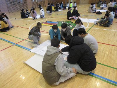 避難者の方が生き物を連れて来た時にはどうするか?感染症にかかった方が出たときにはどうするか?など、難しい場面について小・中学生が一緒に悩み考える姿が見られました。他の学年の交流学習も今週予定しています。