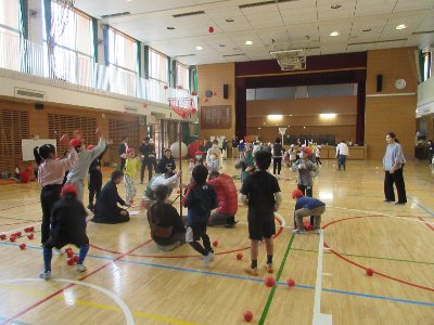 25日(土)土曜日学校・ハッピィさたでぃ・おやじの会プレゼンツ「あまぬま冬の大運動会」が開催されました。参加した子どもたちは約80名。アリーナで熱戦が繰り広げられました。