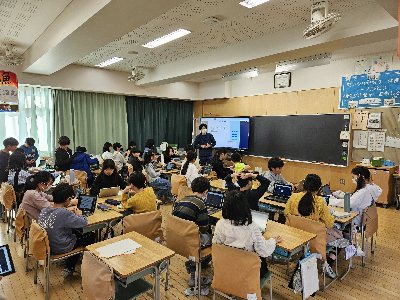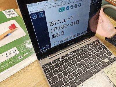 5年生が社会科で情報について学習しています。身の周りにある様々な情報がどのようにつくられているか、体験的に取り組んでいました。タブレット端末の交流ソフトを活用して、子どもたちががニュース番組作りに挑戦です。