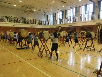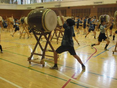 写真にあるように、練習の成果を発揮し力強く太鼓を叩く姿が見られました。