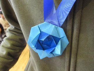 6年生が首から下げているのは、2年生が折り紙で気持ちを込めて作ったメダルです。プレゼントをもらった6年生も、嬉しそうです。