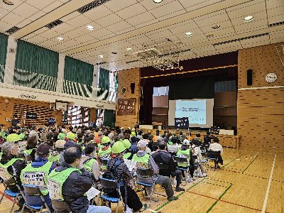 2日(日)に本校校庭やアリーナで8町会合同防災訓練が行われ約200名の方々が参加されました。はじめに荻窪消防署天沼出張所長より防災についてのお話があり、初期消火の大切さを再確認しました。