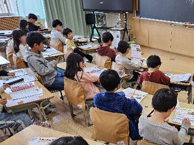 18日に、2年生が3学期の学習や生活の振り返りに取り組んでいました。今学期の始めに書いた目標を確認して、できるようになったことやもっと頑張りたかったこと、なかなかできなかったことなどを丁寧に書いていました。