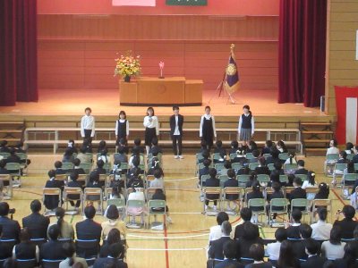式辞では、交通安全や挨拶について話をしました。みんな話の聞き方がとても上手でした。