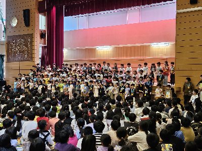 お返しに1年生から「青い空に絵をかこう」の歌のプレゼントがありました。小学校に通って約2週間、とても立派な姿でした。