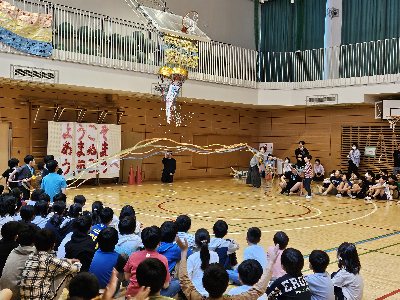 写真はくす玉の様子です。1年生代表が引いて大成功 ! これから、1年生も在校生に仲間入りして休み時間等過ごして行きます。