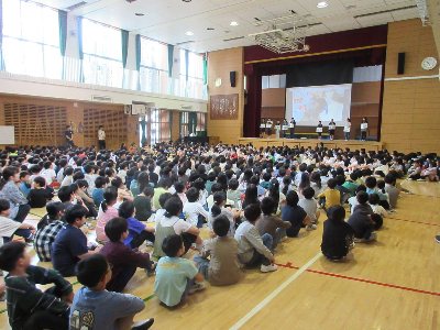 12日中休み・チャレンジの時間に委員会紹介集会を行いました。各委員会が取り組んでいる仕事や今年度の目標などについて、委員長から話がありました。