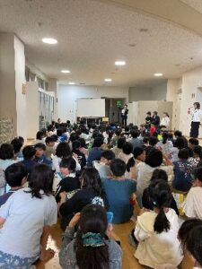 13日に商工会議所などの方々を講師にお招きし、4年生の地域安全マップづくりがスタートしました。これから地域を取材するにあたり、危険がひそむ場所はどんな所か?講師の先生方からお話をうかがいました。