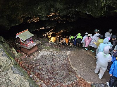 昼食の後は、富岳風穴に来ています。中に入るとひんやりして、とても涼しいです。天然...