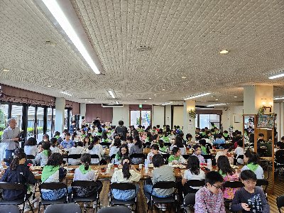 2025-06-26 (5年生)富士移動教室⑤ 2日目の朝です。鳥の鳴き声が聞こえます。雨も上がり、宿舎前で朝会を行うことができました。写真は保健係を中心に朝の体操(天沼エクササイズ)に取り組んでいるところです。 朝食のメニューは、オムレツや魚の照焼、ご飯、味噌汁などです。この後、予定通り登山へ出かけます。 Home › 5年 › (5年生)富士移動教室⑤ 関連記事 今日の授業風景 今日の授業風景 今日の授業風景 今日の授業風景 ハッピーブックタイム (5年生)富士移動教室④ (5年生)富士移動教室⑥