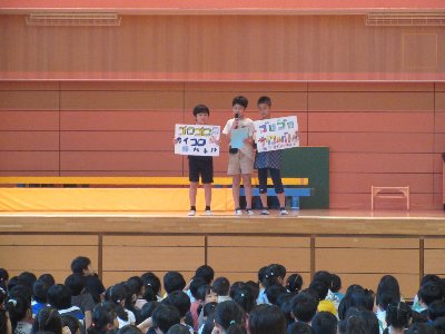 2025-07-10 (学校)あまぬま祭りPR集会 今日は、中休み等の時間にあまぬま祭りPR集会を行いました。大きな声で元気に発表するクラス、自分たちがボーリングのピンになりきって楽しさをアピールするクラスなど、色々な発表がありました。 聞く側の子どもたちも真剣です。どこのクラスに行こうか?頭の中で当日回る順番をすでに考えているようでした。また、お祭り当日の様子もお伝えします! Home › 学校全体 › (学校)あまぬま祭りPR集会 関連記事 音楽会リハーサル ハッピーブックタイム 眼科検診 終業式 6年生を送る会 (学校)休み時間に入る前に (学校)1学期終業式