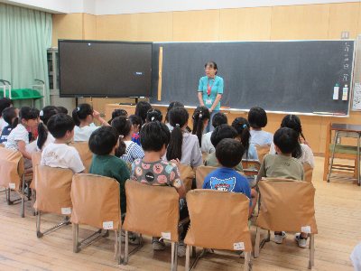 今日は午前中に2年生の各学級で、今学期最後のおはなしかいがありました。お話は、「ひな鳥とねこ」「ふしぎなたいこ」「ターちゃんとペリカン」の3つです。