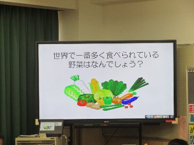2025-07-15 (4年生)食育 旬の食材 給食の時間、4年生の子どもたちに栄養教諭から旬の食材トマトについて話をしました。話の始まりは、「世界で1番多く食べられている野菜は何でしょう?」というクイズです。皆さんは何だと思われますか? 1枚目の写真からも分かるでしょうか…答えはトマトです。どんなトマト料理があるか?、国内の産地について、種類についてなどの話がありました。トマトが好きな子も、苦手な子も、残さず食べようとがんばっていました。 Home › 4年 › (4年生)食育 旬の食材 関連記事 あと3日 運動会午後の部① 杉並区学力調査 4年生の書き初め練習 今日の授業風景 (4年生)理科 プラネタリウム (こだま・4年生)あまぬままつり④