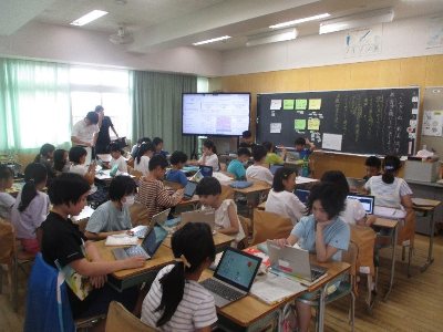 4年生は国語「ごんぎつね」で一人一人が立てた問いを解決しようと取り組んでいました。タブレットで取り組む子、ワークシートを活用する子、画用紙にまとめる子、様々な様子が見られました。どちらの授業も子どもたちなりに主体的に取り組む姿がありました。