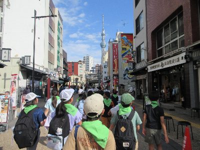 浅草見学では、浅草寺やその周りを学級ごとに回りました。たくさんの外国からの観光客の方もいました。日本の伝統文化を感じる場所や建物がたくさん見られました。