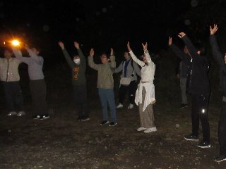 2日目の夜はキャンプファイヤーです。天気にも恵まれ、レク係が中心となり進めました。じゃんけん大会やフォークダンス、犯人探しなど、みんなが楽しめるようにと工夫されていました。