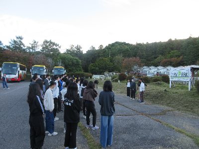 2025-10-08 (6年生)白樺湖移動教室⑨ 朝会前に宿舎の周りを見ると、葉が赤く色づき紅葉を始めているところがありました。朝晩の寒暖差が伝わります。 写真は朝会の様子です。係の担当児童が中心となり進めています。発熱児童無しです。予定通り、考古博物館へ出発しました。 Home › 6年 › (6年生)白樺湖移動教室⑨ 関連記事 書き初め練習 ダンスクラブの発表 6年生の「命の授業」 運動会の係活動 今日の授業風景 (6年生)白樺湖移動教室⑧ (6年生)白樺湖移動教室⑩