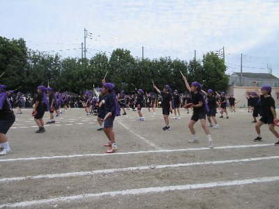 (6年生)「クラスダンス・エイサー」始めは各クラスの子どもたちが考えた創作ダンス、続いて心を一つにを目指して取り組んだエイサーです。パーランクーの音が校庭に響きました。