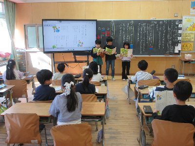 2025-11-10 (1年生)国語 ことばをたのしもう 1年生の授業を見に行きました。教科書にある「ぞうさんのぼうし」や「きっときってかってきて」「はやくちことば」の3つから、自分で選んだ言葉を練習していきます。一人で練習する子や、グループで練習する子もいます。最後に発表した子どもたちは、読む速さを工夫したり、声の大きさを工夫したりしていました。1年生が自己選択した取組です。 Home › 1年 › (1年生)国語 ことばをたのしもう 関連記事 1年生の生活科見学 ICT授業公開日 入学式等の準備 (1・2年生)生活科 秋探し 今日はリザーブ給食 (3・1・5年生)学年別体育発表会表現 (1年生)国語 じどうしゃくらべ