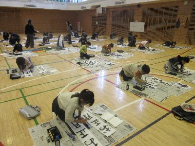 13日に3年生が書初めに取り組みました。今年の文字は「お正月」です。12月に続い
