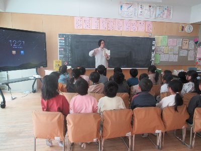 すばなしでは、AWの皆さんは、なにも見ずにお話しされます。各教室で、話者の方をしかっりと見て話を聞く子どもたちの姿が見られました。写真からも、お話に引き込まれている子どもたちの様子が伝わります。