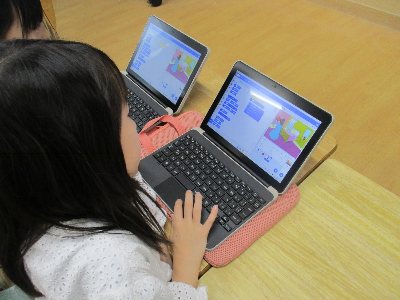 3年生の教室をのぞくと、夢中になって取り組む姿がありました。ブラウザ上のソフトを...