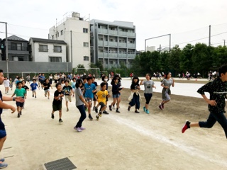 週の始まりは全校朝会から。音楽に合わせて足踏みでアリーナに整列します。月曜日が休...