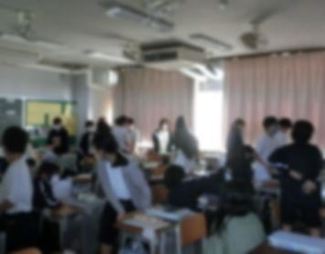 | <令和3年10月2日> 台風一過の10月2日、3年生のスピーキングテストが行われました。同じ日、1年生は11月校外学習の準備、2年生は職場体験の学級での発表会がありました。みんな頑張っていました。 <R3.10.4UP> |