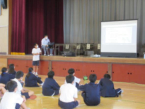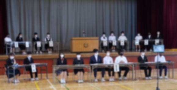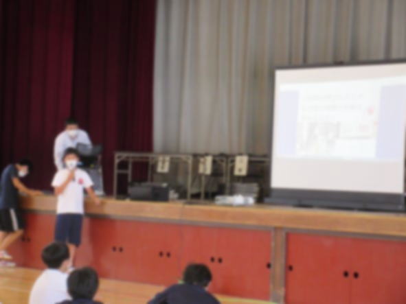 | <令和3年10月7日> 生徒総会をリモートで行いました(写真は体育館の様子です。この体育館の様子を各学級へ動画配信しました)。これまで3年生中心に生徒会(委員会)活動を行っていましたが、いよいよ2年生が主体となり、1年生が本格的に活動することになります。 「自主、自律、共生」を目指して、生徒の皆さんの「自治の力」を存分に発揮してくれることを期待しています! <R3.10.7UP> |