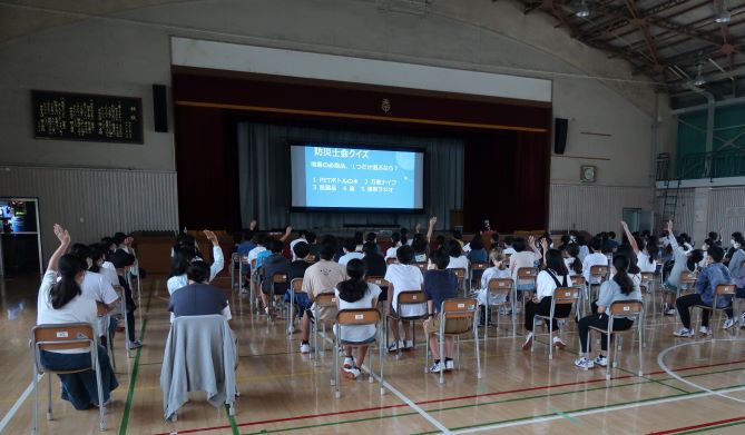<令和3年9月18日> ![]() <HUG訓練(2、3年生)> <防災学習(1年生)> HUGはH(避難所)U(運営)G(ゲーム)の頭文字をとったカードゲームです。英語の「抱きしめる」という、避難者を優しく受け入れる避難所のイメージを重ね合わせて名付けられたそうです。カードには避難者のプロフィールと事情が書かれています。カードに書かれた避難者が避難所にいるときに、避難所で起こる様々な出来事にどう対応していくか、避難所運営を疑似体験するゲームです。2、3年生縦割班でゲームを行いました。みんな避難所の運営者になりきってゲームに参加してくれていました。 1年生は防災学習を行いました。講師の方から、地震のこと、レスキュー活動のこと、備蓄などの備えや防災時の調理のことについてお話を聞きました。 ※生徒引き渡し訓練も行いました。悪天候の中、訓練にご協力いただきありがとうござい ました。 <R3.9.18UP> |