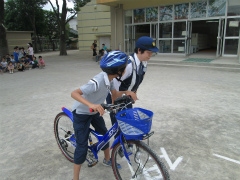 「自転車安全教室 左右を確認して出発です」