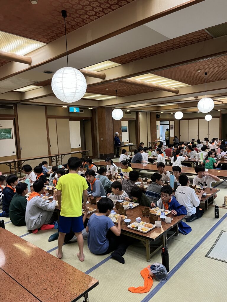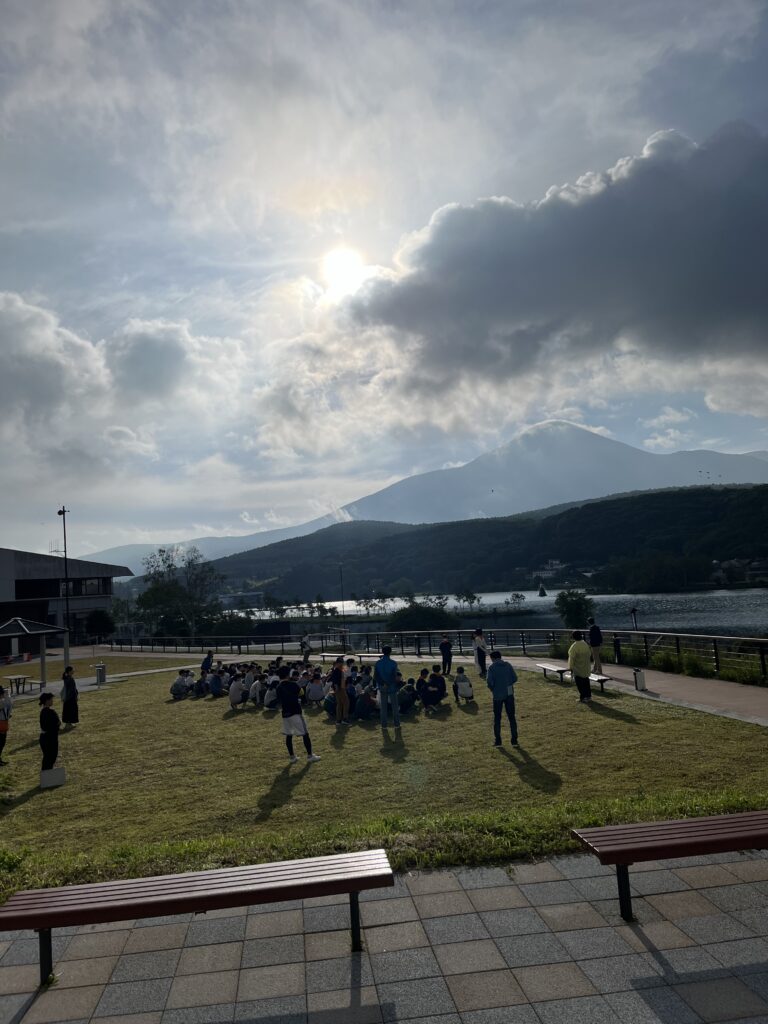 東京とは違い涼しく爽やかな朝で2日目を迎えました。湖の前で朝の会を行い、散策をしたり、朝食を食べたりしました。今日はオリエンテーリングなど班で協力する活動があるので、自然を満喫しながら楽しんでほしいと思います。