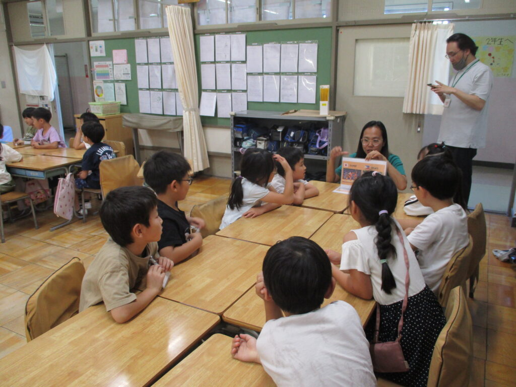 の先生にたくさんいらしていただき、グループに分かれて交流をしました。 好きな色、好きな飲み物、好きな果物などを、英語を使って楽しく紹介することができました。 「次の英語はいつ?またやりたい!」と、意欲的な児童の様子も見られました。