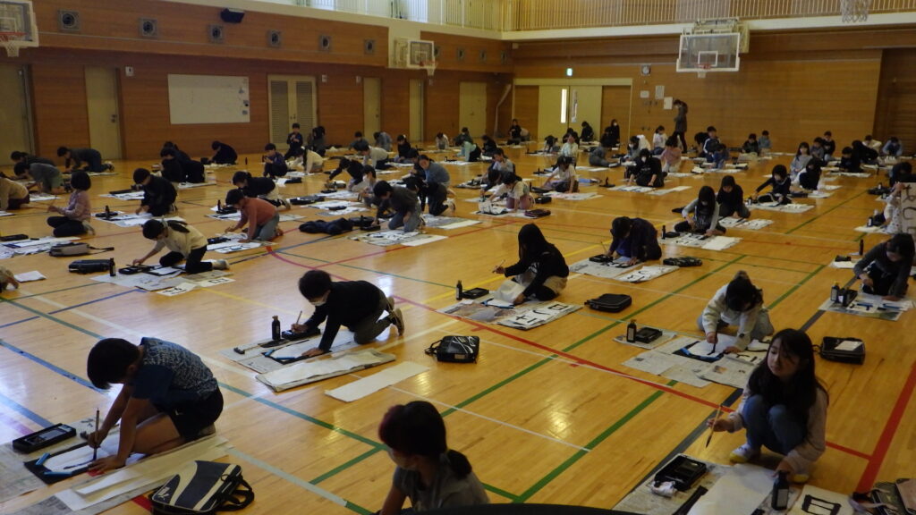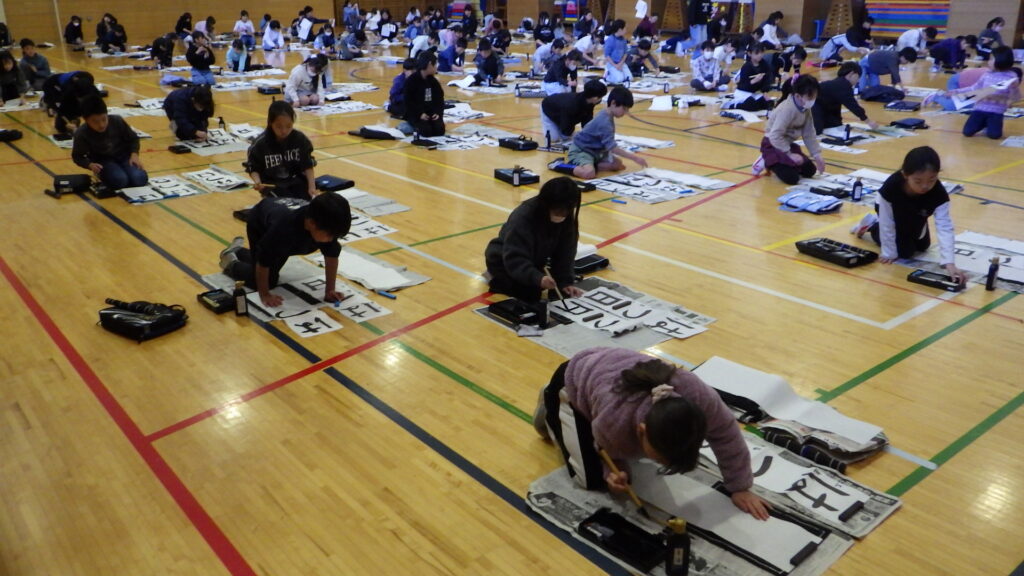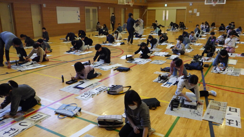 14日(火)に、体育館で席書会を行いました。3年生にとっては、体育館で、学年そろって、書写を行う書き初めは初めての経験です。