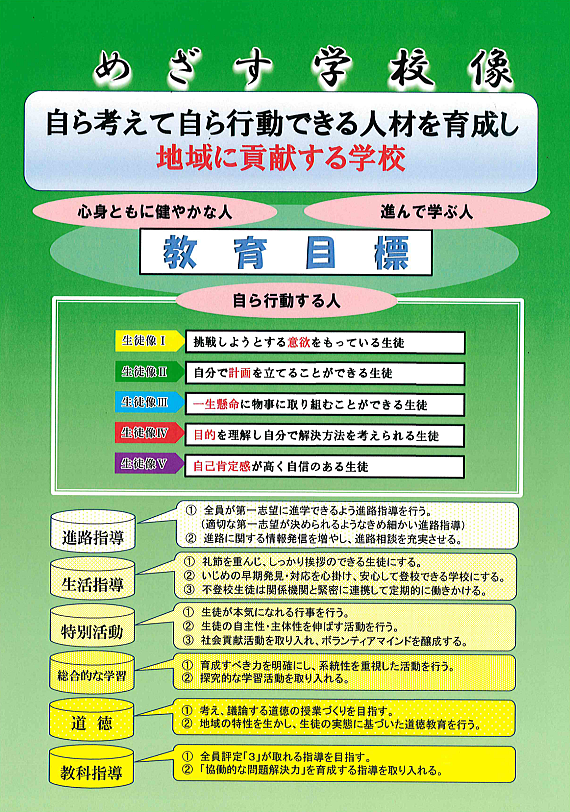 | ・学級数 | 7学級 (1年生 3学級、2年生 2学級、3年生 2学級) | ||||||||||||||||||||||||||||||||||||||||