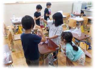 きれいな色の色水を作るために水量や作り方を工夫して取り組みました。