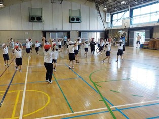 日本女子体育大学から講師の方がいらして、楽しくダンスを教えてくれました。
