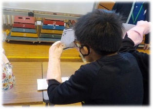 浴風会の方に来ていただき、車いす体験や高齢者体験をしました。
