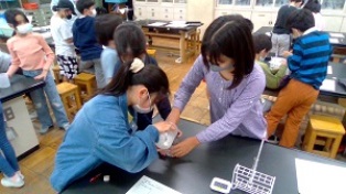 「すがたを変える水」の学習の中の、水の温度を下げるとどうなるのかという実験を出前授業でしていただきました。