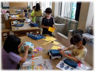 ゴムの力で走る仕組みを学び、夢のある作品づくりに挑戦中です。