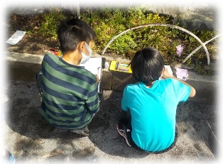 様々な植物や生き物などを見付け、観察してスケッチしました。