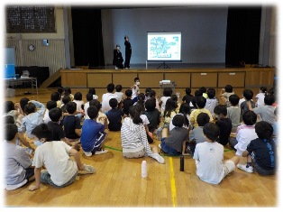 | 社会科「水はどこから」の学習のまとめとして、水の循環について水道局の方に来ていただきました。 |