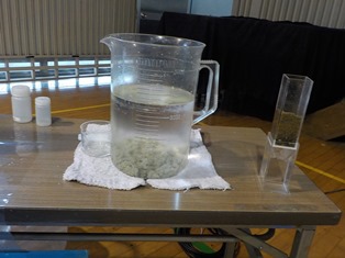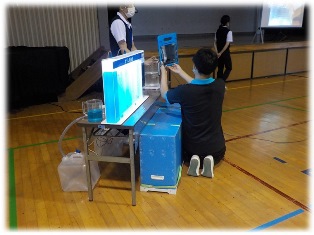 見やすいように、実験の様子をスクリーンに映してくださいました。 |