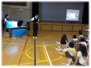 感染症予防対応のため、1つの実験を全員で観察しました。