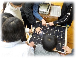 太陽光パネルやインバーターを観察したり触ったりしました。 |