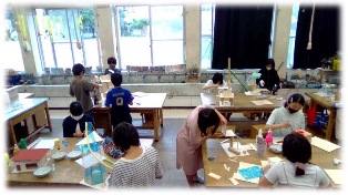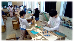 1学期に取り組んだ「目指せ! 建築家」の図工の授業の様子です。
