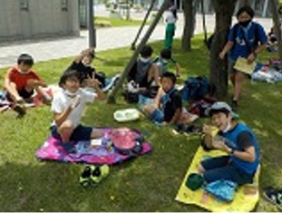 大空の下、本当に久しぶりのみんなで食べるお弁当です。