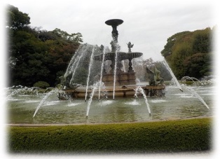 主庭では噴水や松の木を背景に写真屋さんによる撮影でパチリ。 |