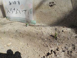 1月の栽培委員会で整備した花壇から、芽が出てきています